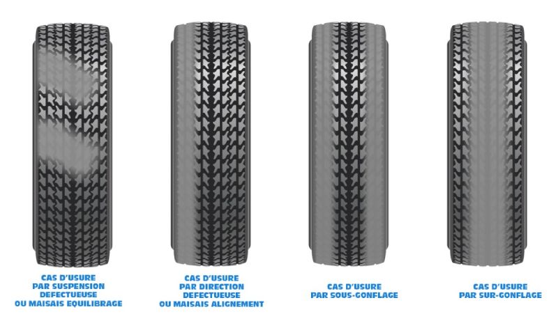Ce mauvais contact pneus/route provoque l'usure en facette.